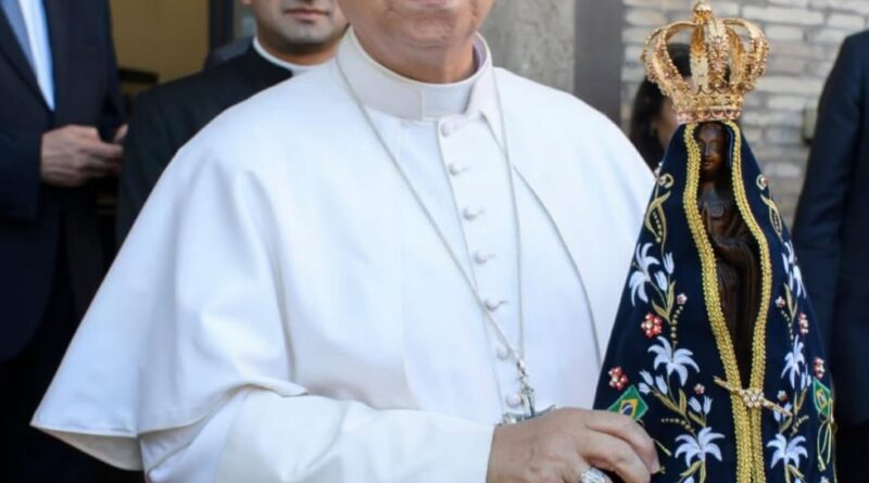 Papa Leão XIV com imagem de Nossa Senhora Aparecida