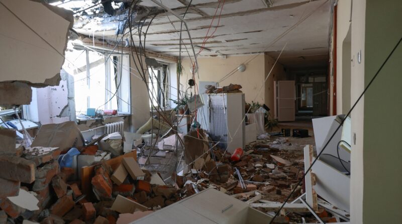 Um dos ataques atingiu o teto de uma maternidade, segundo o militar. Imagens divulgadas pelos serviços de emergência ucranianos mostram janelas destruídas, escombros dentro do edifício e bombeiros trabalhando no local.