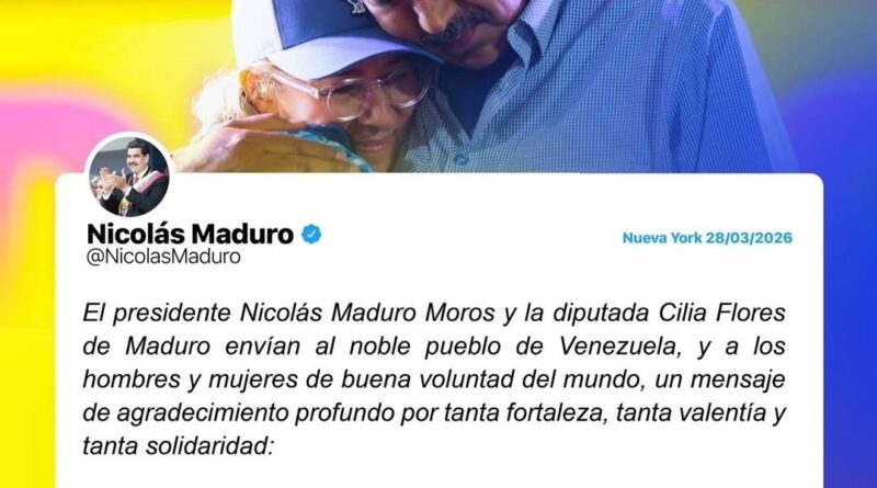 Imagem da postagem de Nicolás Maduro nas redes sociais, em 28 de março de 2026.