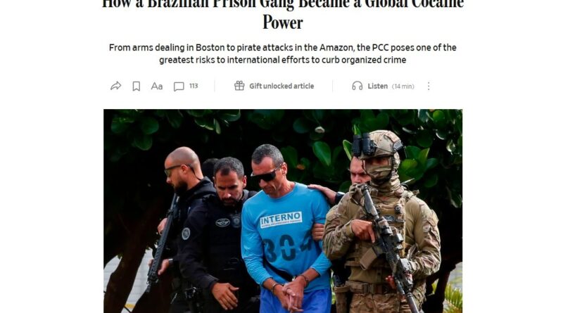 Reportagem do jornal ‘The Wall Street Journal’ destaca atuação da facção criminosa PCC.